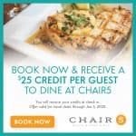 $25 Per Reservation Food Credit to Dine at Chair 5